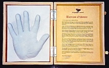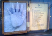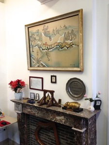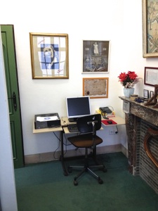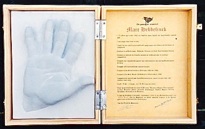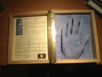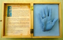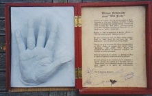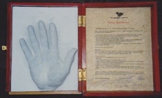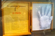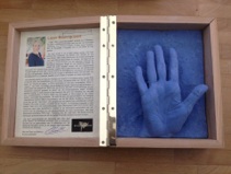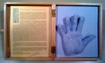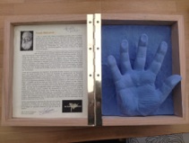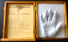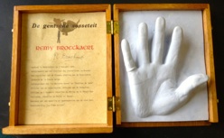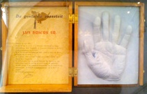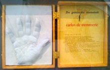 Kleine tentoonstelling n.a.v. het bezoek aan het archief op 29 september 2019. Op het burrau enkele handjes en de ingekleurde tekening van John Van Hulle gemaakt t.g.v. ons 20-jarig bestaan.