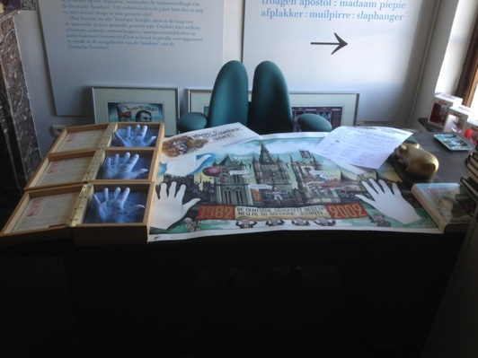 rechts: allerlei publikaties van ons handsjes.